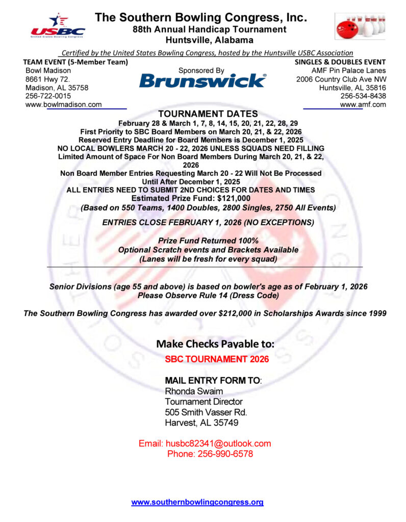 Women’s Championship Tournament 3/28-29 and City Open Championship 4/11-12 at Gaude’ Lanes on Keesler Airforce Base. If you are participating in one or both of the base tournaments you must have a base pass for access contact a board member for your pass!